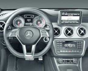 The aggressive body style is more than just cosmetic. The svelte lines create aerodynamics to maximize performance while minimizing fuel waste. The available Sport Package adds even more ferocity with massive air intakes, a rear diffuser, and flared side skirts. Not to be outdone, the interior is just as stunning with ultra luxurious materials and sculpted front seats. More like a cockpit than a car's dashboard, the 2014 Mercedes-Benz CLA-Class has sport gauges and a leather wrapped and three-spoke multifunction sport steering wheel with shift paddles. There is also an available Panorama sunroof.