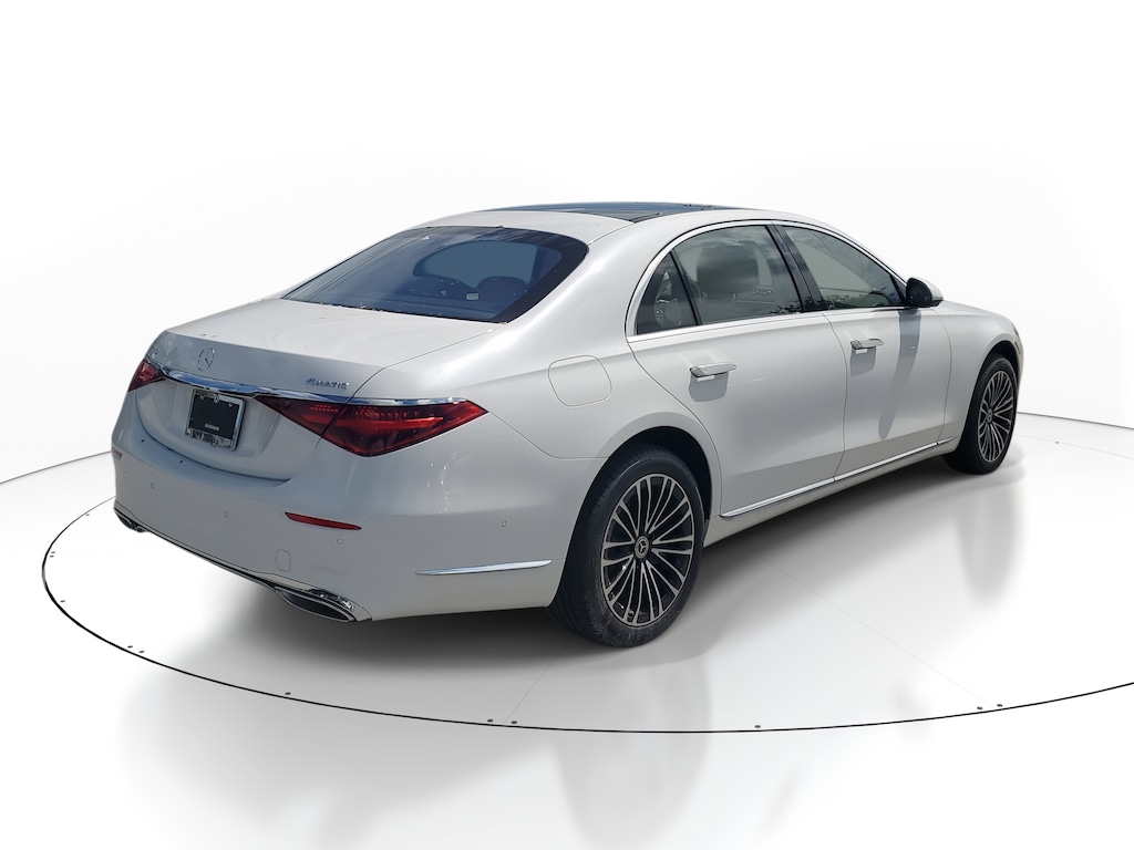 MANUFAKTUR Moonlight White Metallic 2026 Mercedes-Benz Sedan S-Class S 580e 4D Sedan 4MATIC® 4MATIC® 9-Speed Automatic I6 I6, 4MATIC®, Macchiato Beige/Grey Leather.