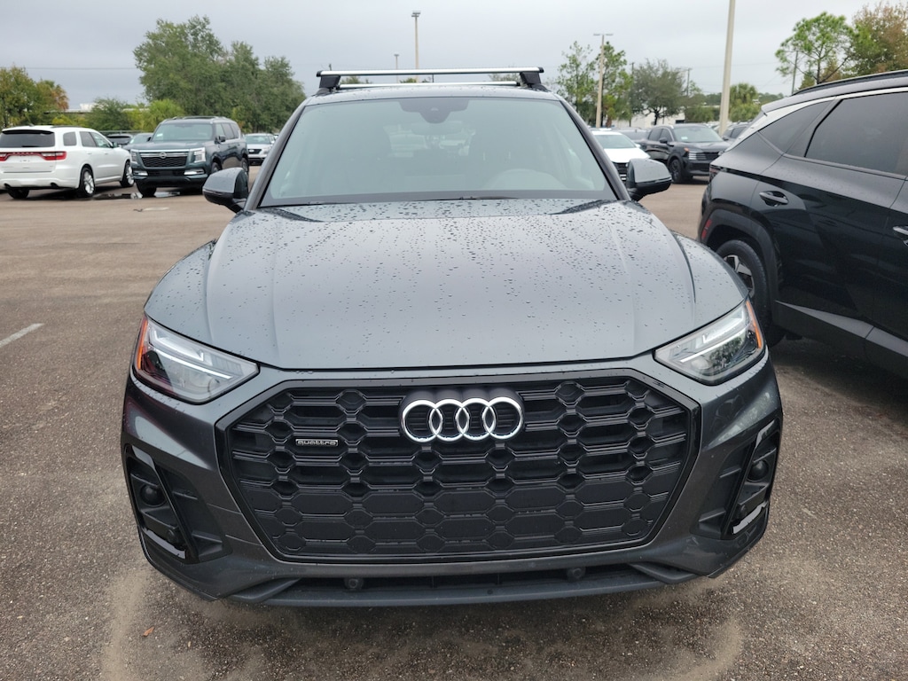 23/28 City/Highway MPG Black Leather, 10 Speakers, 21 Black Optic Wheel Package, ABS brakes, Active Cruise Control, Alloy wheels, Audi Virtual Cockpit Plus, Bang & Olufsen 3D Sound System, Compass, Driver Seat Memory, Electronic Stability Control, Four wheel independent suspension, Front dual zone A/C, Front fog lights, Heated door mirrors, Heated front seats, Heated Front Sport Seats, Illuminated entry, Leatherette Covered Center Console and Door Armrests, LED Interior Lighting Plus Package, Low tire pressure warning, Panoramic Sunroof, Power Adjustable Steering Column, Power Folding Auto-Dim Exterior Mirrors with Memory, Power Liftgate, Premium Plus Package, Radio: MMI Navigation Plus, Rear fog lights, Remote keyless entry, SiriusXM with 360L, Top View Camera System, Traction control, Traffic Sign Recognition, Wheels: 21 5-Double-Spoke Module Design. Recent Arrival! CARFAX One-Owner. Clean CARFAX.Chronos Gray Metallic 2025 Audi Q5 45 S line Premium Plus quattro quattro 7-Speed Automatic S tronic 2.0L Turbocharged