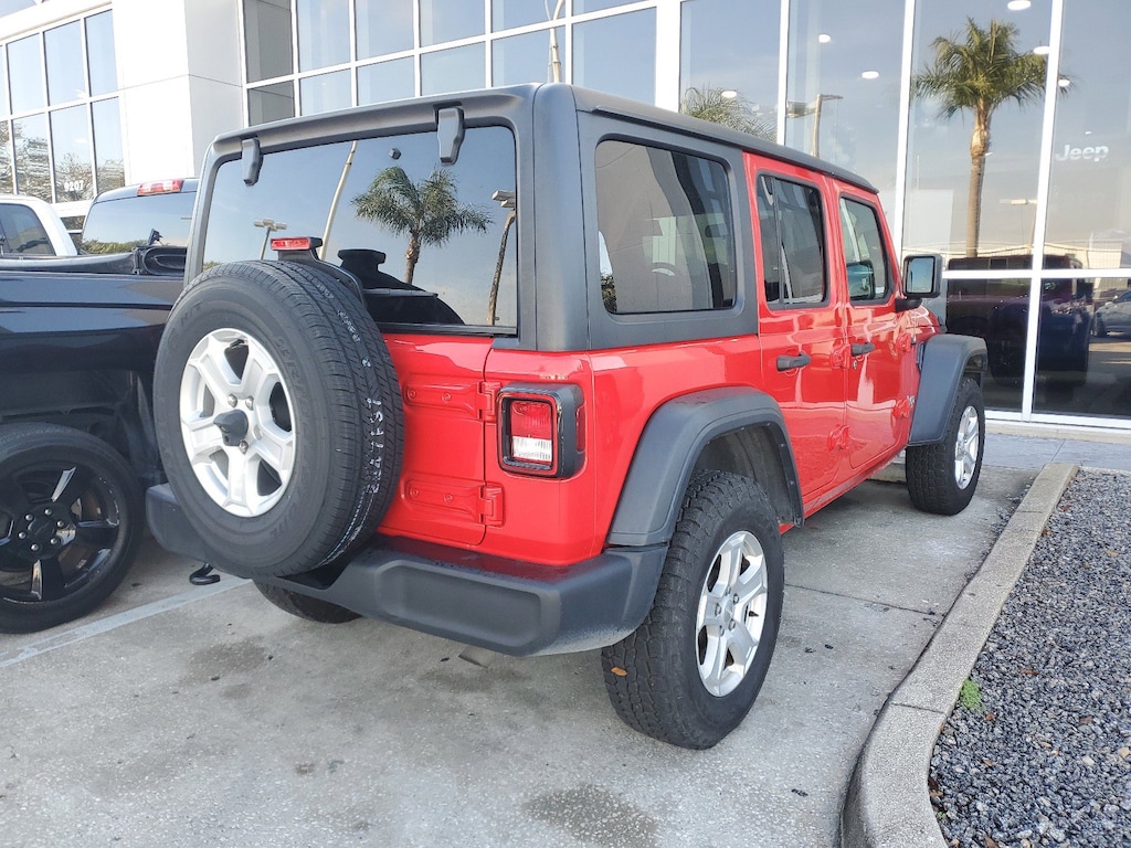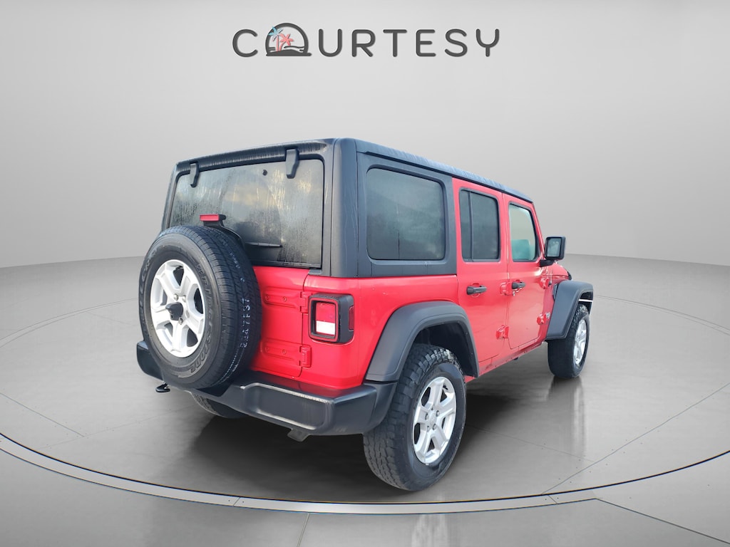 LOW MILES, Automatic Headlamps, Convenience Group, Deep Tint Sunscreen Windows, Front 1-Touch Down Power Windows, Leather Wrapped Steering Wheel, Power Heated Mirrors, Quick Order Package 24S Sport S, Remote Keyless Entry, Security Alarm, Speed Sensitive Power Locks, Sun Visors w/Illuminated Vanity Mirrors, Universal Garage Door Opener, Wheels: 17 x 7.5 Tech Silver Aluminum.Firecracker Red Clearcoat 2018 Jeep Wrangler Unlimited Sport S 4WD 8-Speed Automatic 3.6L V6 24V VVT