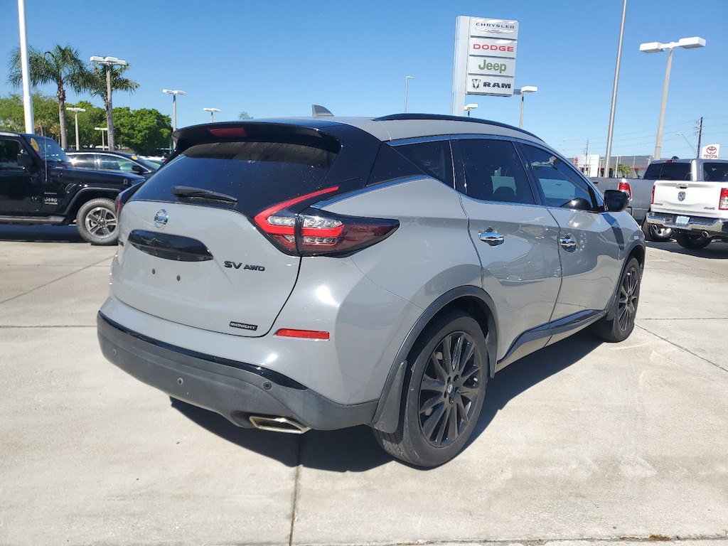 Discover the perfect blend of style, comfort, and performance in the 2022 Nissan Murano SV. This exceptional SUV is ready to elevate your driving experience and meet the demands of your active lifestyle.Boasting a sleek and sophisticated exterior, the Murano SV showcases a bold presence on the road. Highlighted by the Midnight Edition Package, this Murano features striking black accents on the grille, fascia, mirrors, and more, creating a striking and modern aesthetic. The 20-inch gloss black alloy wheels and illuminated kickplates add a touch of elegance, while the cargo area protector, retractable cargo cover, and cargo net ensure your belongings are secure and protected.